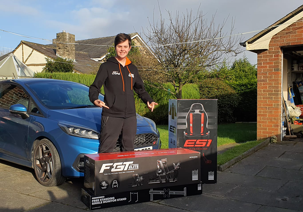 F-GT Elite Cockpit Front & Side Mount Edition, Elite ES1 Sim Racing Seat, Elite Freestanding Single Monitor Stand and F-GT Elite Keyboard and Mouse Tray Carbon Grey