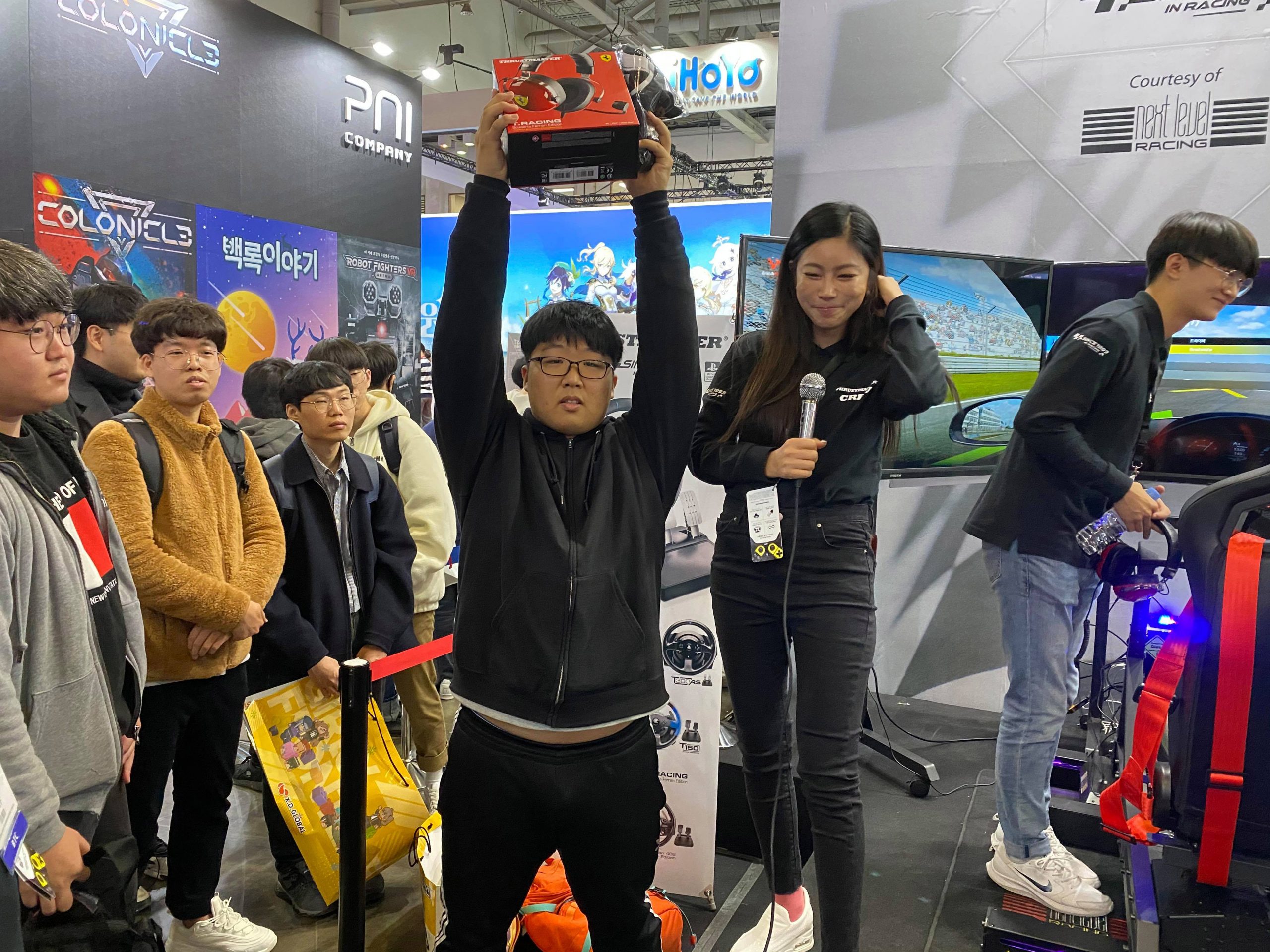 Es ist uns wichtig, dass Menschen aus aller Welt die Produkte von Next Level Racing und unsere Marke kennen und kennenlernen. In der vergangenen Woche konnten neue und erfahrene Sim-Rennsportfans auf der G-Star Global Gaming Exhibition 2019 in Südkorea unsere Traction Plus, Motion Platform V3 und GTtrack mit einem Triple Monitor-Setup testen. Dank unseres globalen Vertriebspartners Thrustmaster ®, der uns an seinem Stand aufgestellt hat, standen Menschenmengen an, um ein komplettes Renncockpit auszuprobieren und zum ersten Mal echte Bewegung zu erleben.