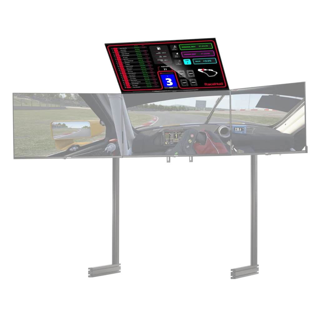 El accesorio de soporte para cuatro monitores Elite Freestanding Overhead Quad aumenta aún más la inmersión en las carreras, con soporte para pantallas de 21″ a 43″. Cuenta con amplia libertad de ajuste (275mm vertical, 350mm horizontal y 48 grados de inclinación) y opciones de ajuste fino para completar la experiencia ultimaEl Complemento de Monitor Superior / Cuarto Monitor para los Soportes para Monitores Elite profundiza aún más la inmersión en las carreras y es compatible con pantallas de 21″ – 43″. Se caracteriza por brindar una amplia libertad de ajuste (275mm en Vertical, 350mm en Horizontal e inclinación de 48 grados) y opciones de ajuste fino para alcanzar el simulador de carreras definitivo. te racing simulator.