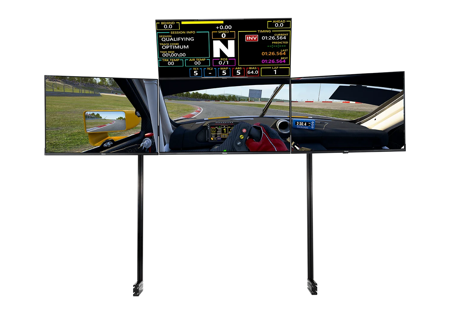 Gracias a que el producto cuenta con varios años de investigación y desarrollo, el Soporte Independiente para Cuatro Monitores Elite de Next Level Racing® ofrece una experiencia inmersiva sin igual para los competidores de simracing. Los conductores tienen a su alrededor tres monitores y una pantalla superior a la vez que cuentan con un alto grado de ajustabilidad. Las posiciones verticales también son de ancho ajustable, lo que les permite a los usuarios con las plataformas Next Level Racing Traction Plus o cabinas más anchas acercar sus pantallas a su posición sentada para alcanzar el campo de visión deseado.