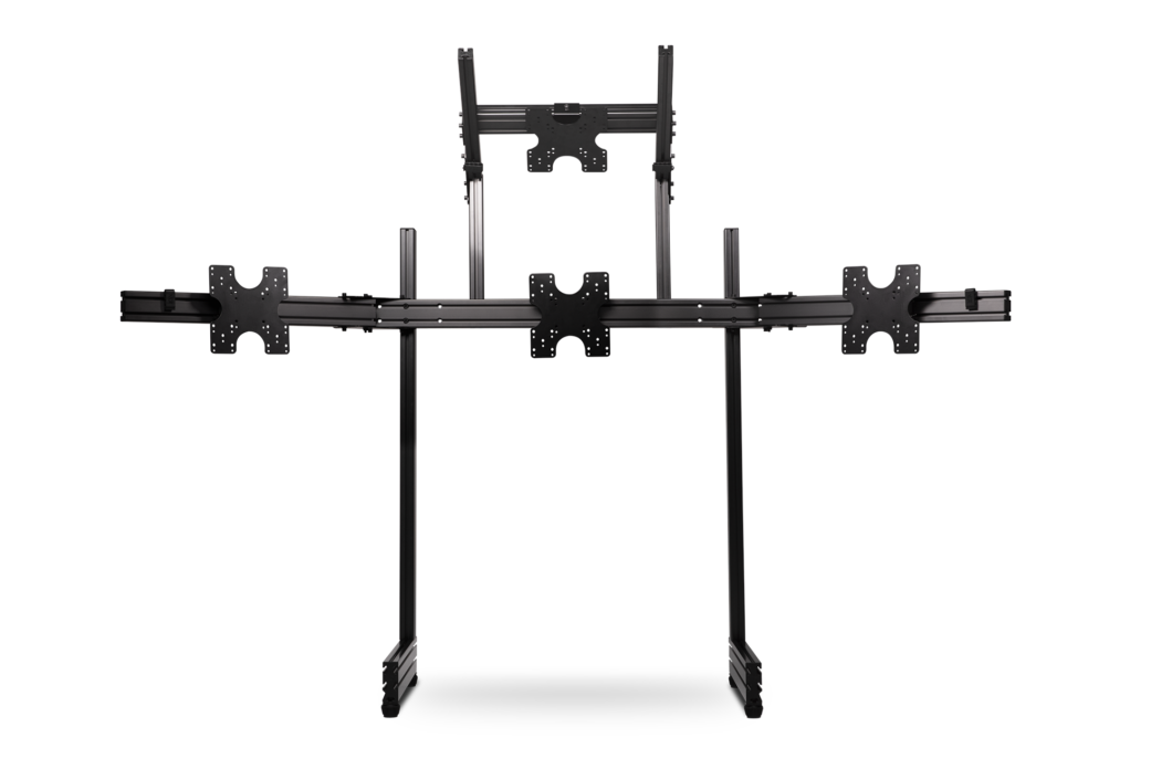 数年にわたる広範の研究と開発により生み出されたNext Level Racing 独立型エリートクアッドモニタースタンドは横並びの3つのモニターに加え、頭上にも1つモニターを設置でき調整性にも優れているため、シムレーサーはいまだかつてないほどレースに没入することが出来ます。正面部分にある直立物の幅も調整可能なので、Next Level Racing Traction Plus platformsに対応しており、コックピットの幅が大きい場合でもシートに画面を近づけられるので最適な視野でレースが可能となります。