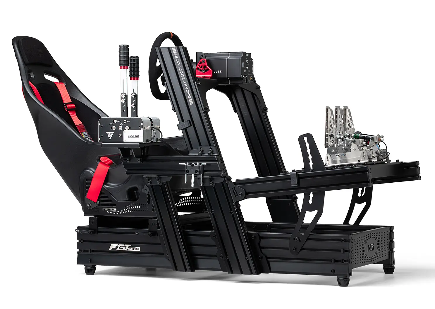 Next Level Racing® F-GT Elite 160 Front & Side Mount Editionは、Front & Side Mount Direct Drive Wheelbase、ペダルセット、シフトレバー、ハンドブレーキ、バスシェーカーなど、多目的対応な互換性を備えた究極のコックピットです。F-GT Elite 160 Front & Side Mount Editionは、Next Level Racingエコシステムであるモーション製品*と互換性があり、次なるレベルのセットアップをお考えのシミュレーション愛好家におすすめです。