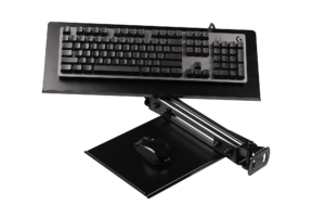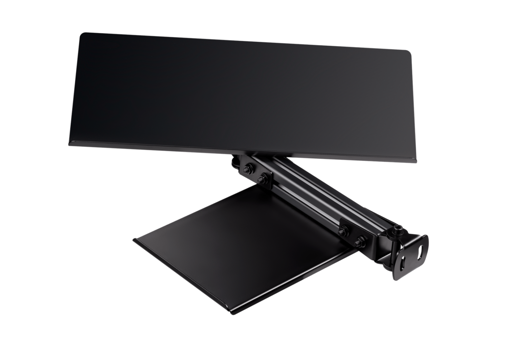Die Next Level Racing® F-GT Elite Tastatur & Maus-Ablage bietet das volle Spektrum an Verstellmöglichkeiten, mit 60 Grad Neigung des Montagearms (30 Grad vorne und 30 Grad hinten) und 150 Grad für die Tastaturablage.