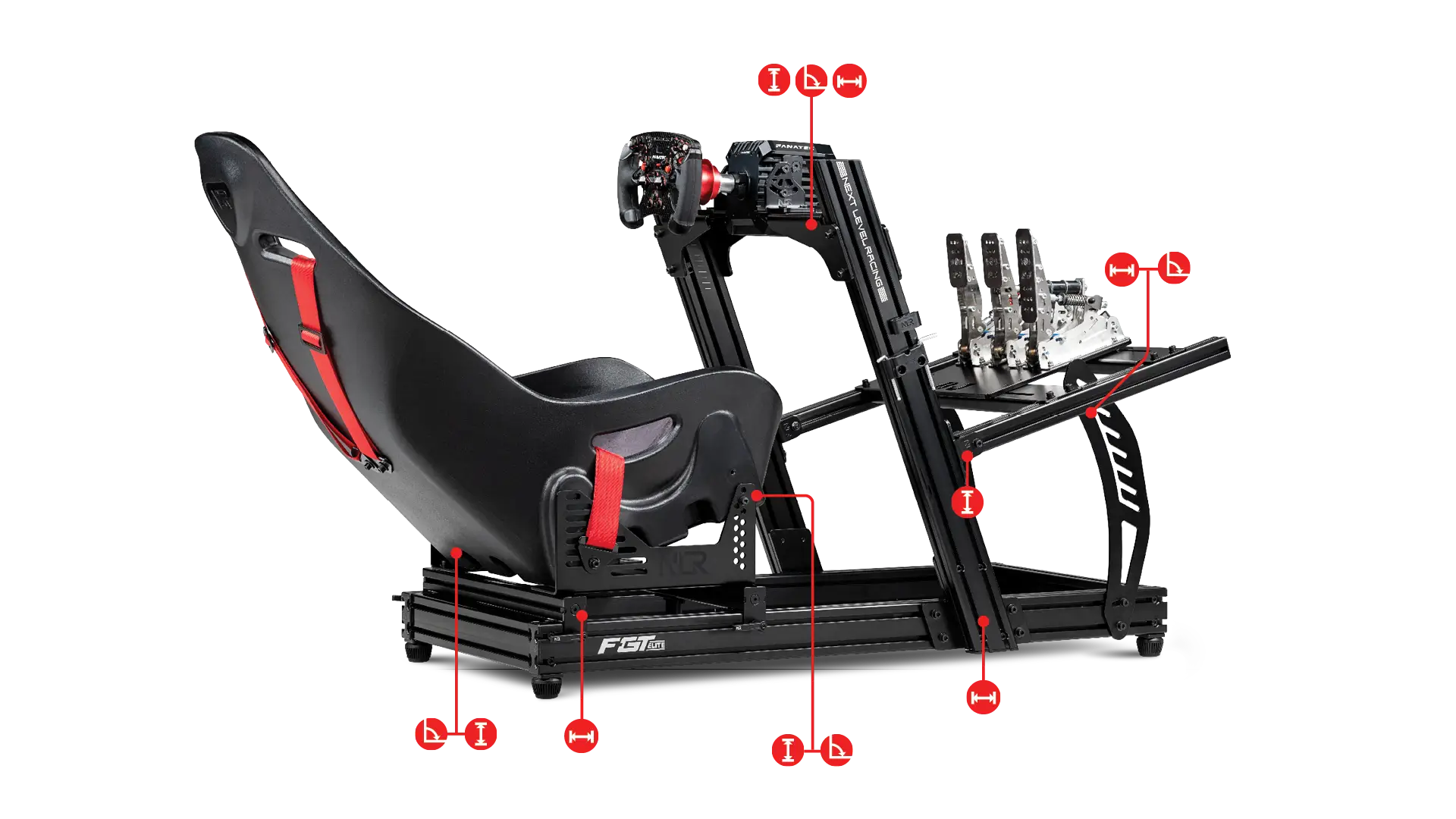 Inclusa in F-GT Elite Lite Front & Side Mount Edition c’è la nota soluzione di montaggio Direct Drive di Next Level Racing. Le parti Piegate a Macchina e Tagliate con precisione al Laser rendono la piattaforma Next Level Racing F-GT Elite Lite Front & Side Mount Cockpit un’opzione premium per i piloti che richiedono il massimo della versatilità e della rigidezza dal loro cockpit.