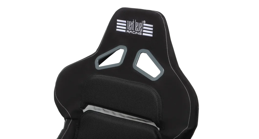 Der ergonomisch gestaltete Sitz bietet außergewöhnliche Unterstützung während langer Rennsessions. Das verbesserte Polsterung im Lenden-, Schulter- und Oberschenkelbereich sorgt für ein komfortables Erlebnis, während das rennsportinspirierte Design Sie in die Action eintauchen lässt. Die Form des Sitzes, inspiriert von GT-Rennsport, bietet eine angepasste Körperhaltung mit seitlichen Wangen und Schulterflügeln, die das immersive Erlebnis verstärken.